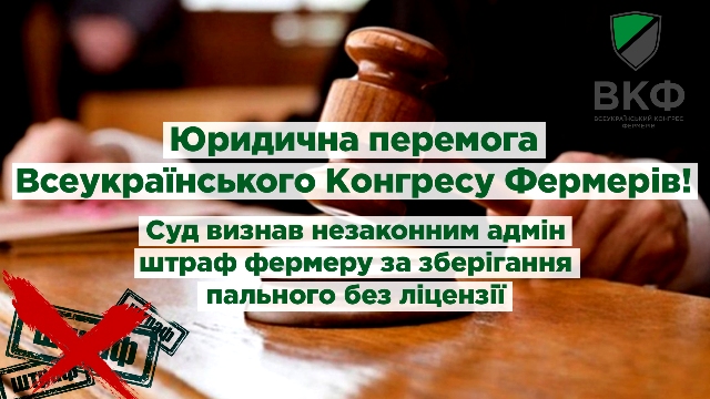 Рокитнянський районний суд Кивської області визнав незаконним штраф, який наклала податкова служба на учасника Всеукраїнського Конгресу Фермерів СФГ «Антей» за нібито зберігання пального без ліцензії.