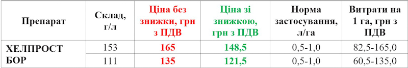 У лінійці Хелпрост є препарат на основі бор етаноламіну – Хелпрост Бор. Він допоможе аграрію саме зараз – восени.