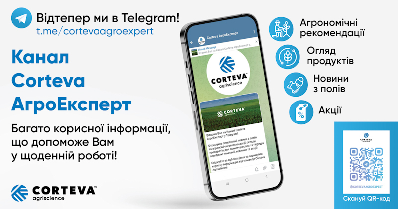 На додаток до існуючого з 2021 року Viber каналу компанії цієї осені почав працювати Telegram канал Corteva АгроЕксперт, де фермери зможуть дізнатися, як краще підібрати відповідний препарат для захисту рослин, дослідити ситуацію на полях та отримати агрономічні рекомендації. Підписники каналу також отримуватимуть інформацію щодо властивостей гібридів портфелю компанії, а також новинок та акцій, які доступні покупцям сучасного насіння та засобів захисту Corteva.