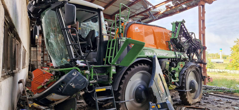 Після огляду обприскувача спеціалісти ДП «Амазоне-Україна» зафіксували: пошкодження ходової (зліва й справа), обидвох баків (чистої рідини та робочого розчину), паралелограма та секцій штанги Flex 2 та CounturControl, пошкодження арматури обприскувача Comfort-Pack та системи пофорсункового внесення AmaSwitch. Крім того, була сильно пошкоджене все облицювання обприскувача, кабіна, відсутні двері.