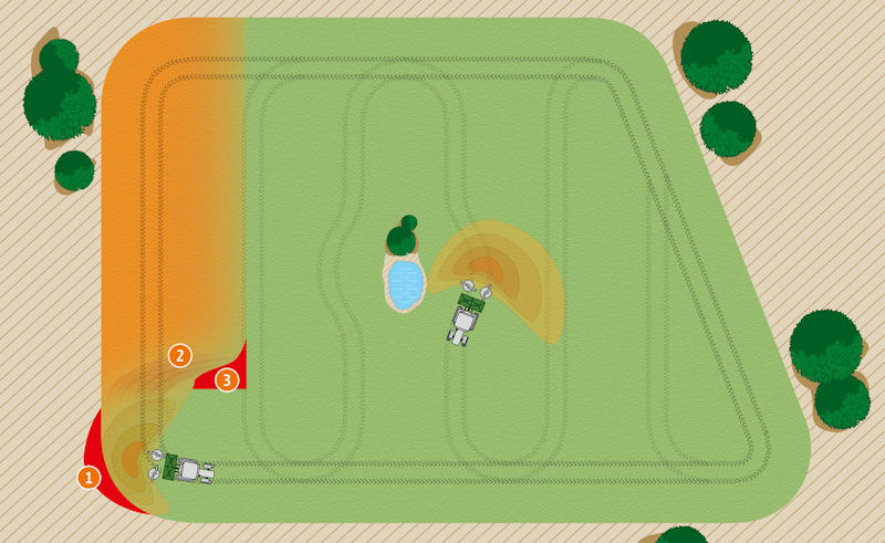 Крім того, відхилення у розподілі на межі поля призводить до внесення добрив поза межами поля. З урахуванням ресурсозбереження та діючих розпоряджень цього слід обов'язково уникати.