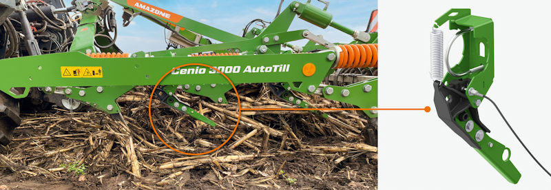 AMAZONE розробила систему механічного функціонального контролю AutoTill, яка розпізнає потоки проходження органічної маси та запобігає повній закупорці. Розпізнавання здійснюється за рахунок контактних кнопок, інтегрованих у секцію стійок. Вони своєчасно визначають нагрівання органічної маси або землі і передають механізатору попереджувальний сигнал та запускають процес усунення проблеми. Перевага механіки, на відміну від системи камер, полягає в експлуатаційній безпеці. Адже камери під час обробітку ґрунту піддаються впливу каміння чи пилу, що призводить до швидкого пошкодження камер.