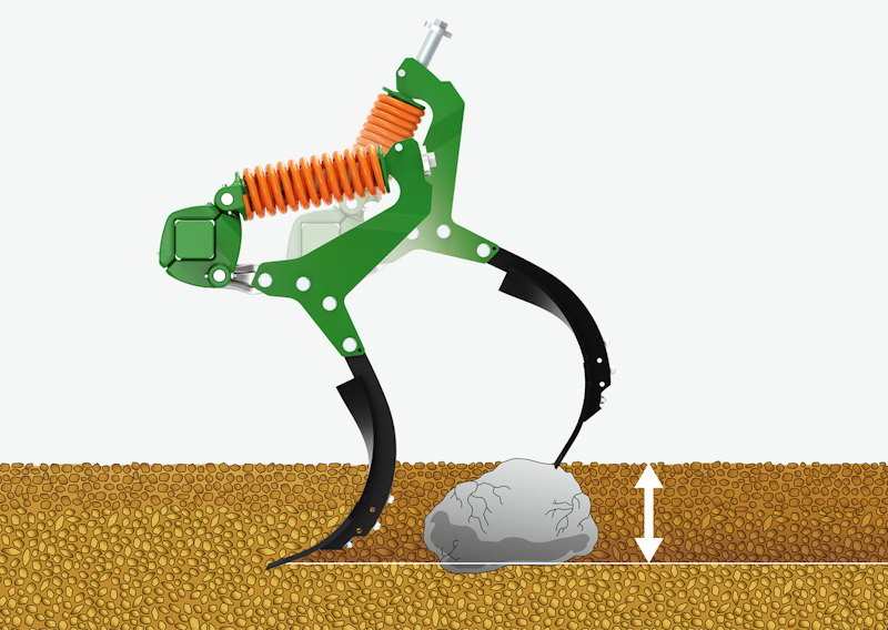 Крім того, система здатна визначити ґрунтові умови, небажані ущільнення і прицільно розпушити їх, а за наявності більших каменів у ґрунті видалити їх.