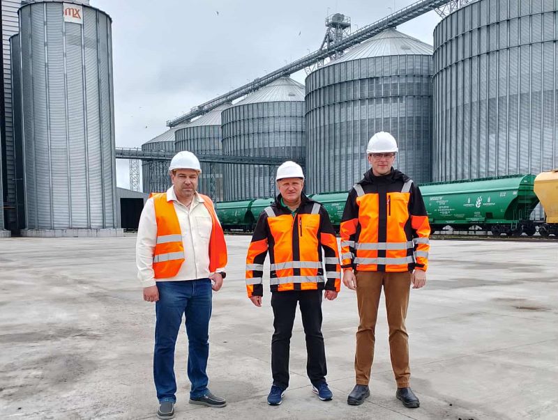 Керівники компанії також показали в роботі елеватор у селище Красне Львівської області. Промисловий комплекс є частиною холдингу «Контінентал Фармерз Груп». Його придбали у червні 2024 року в іншого агрохолдингу.