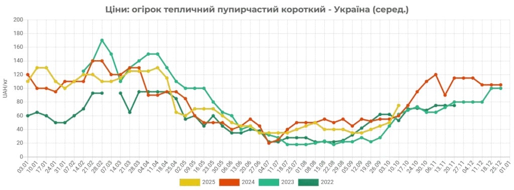 Варто додати, що на сьогоднішній день тепличні огірки в Україні вже пропонуються до продажу в середньому на 15% дорожче, ніж за аналогічний період минулого року. При цьому оператори ринку не виключають, що тепличні комбінати будуть і надалі робити спроби підвищувати ціни на свою продукцію за умови збереження поточних темпів збуту.