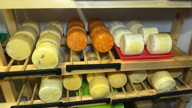 "Камамбер, він в нас дозріває у фользі. Піддався нам десь через рік після того, як ми його розпочали готувати. Монблан — це головка, якій вже три тижні. Вона афінується, а потім її кладемо в розсіл. Потім сир з пажитником, з горішком, мармуровий, сир в каві, в афінажі, це Белпер, тверді кульки в паприці", — розповідає про різноманітність сирів, які виготовляють Світлана.