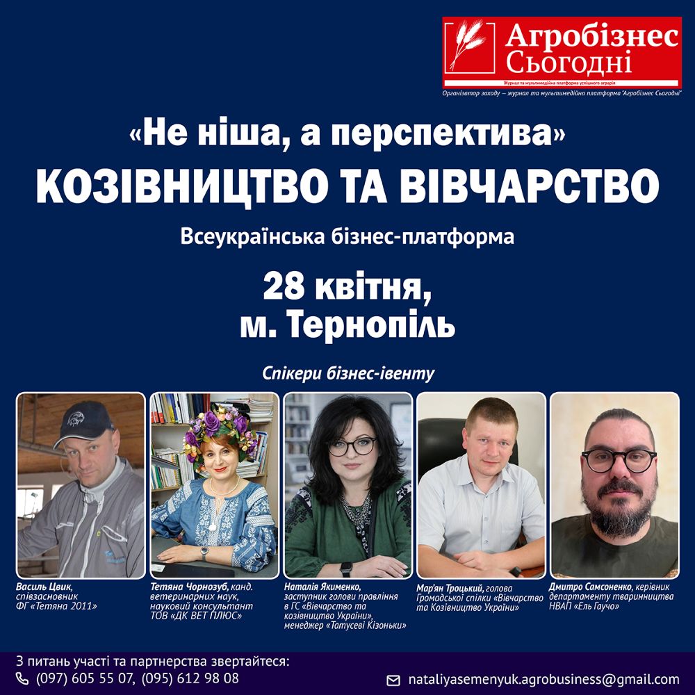 28 квітня 2026 року в Тернополі відбудеться галузевий бізнес-івент «Не ніша, а перспектива». Козівництво та вівчарство, організований журналом та мультимедійною компанією «Агробізнес Сьогодні».
