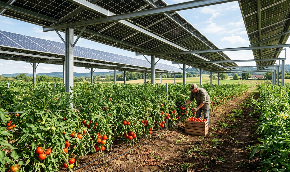 Одна ділянка — двічі: сонячні панелі над томатами економлять 50% води