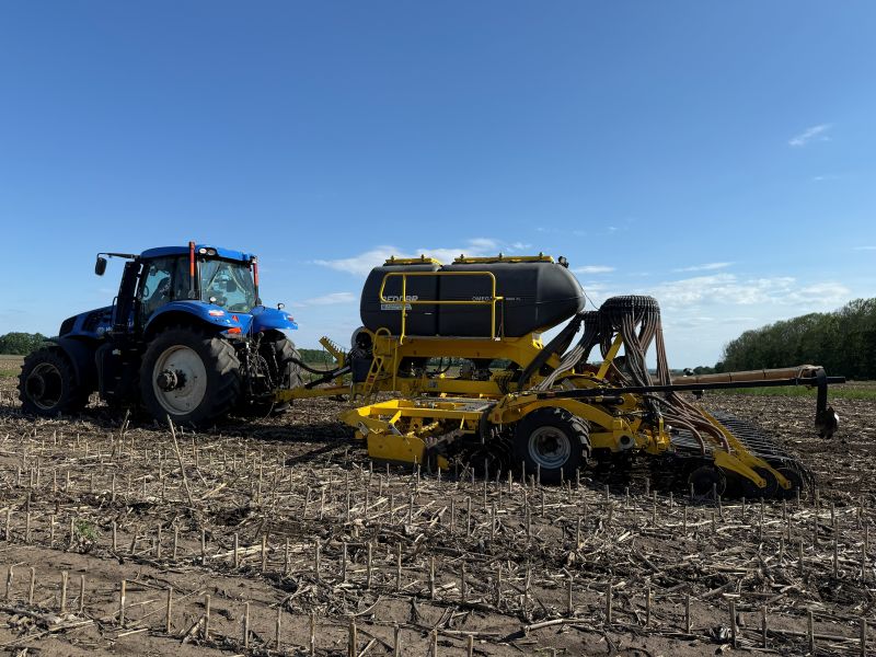 Сівалка OMEGA OO6000FL у цьому випробуванні виступала як «універсальний інструмент» під різні фони — від стерні до оранки — і це принципово, бо соя чутлива не лише до строку, а й до якості посівного ложа, стабільної глибини та контакту насіння з ґрунтом.