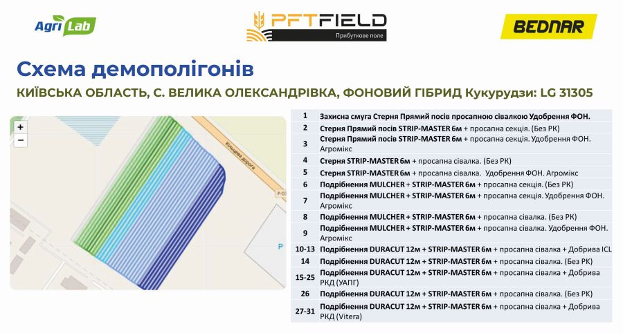 Демополігон проєкту «Прибуткового поля» у селі Велика Олександрівка на Київщині став для кукурудзи справжньою перевіркою на витривалість. Завдання було дослідити як різні поєднання агрегатів з підготовки ґрунту впливають на розвиток рослин у конкретних ґрунтово-кліматичних умовах та який тип обробітку приносить найбільшу прибутковість.
