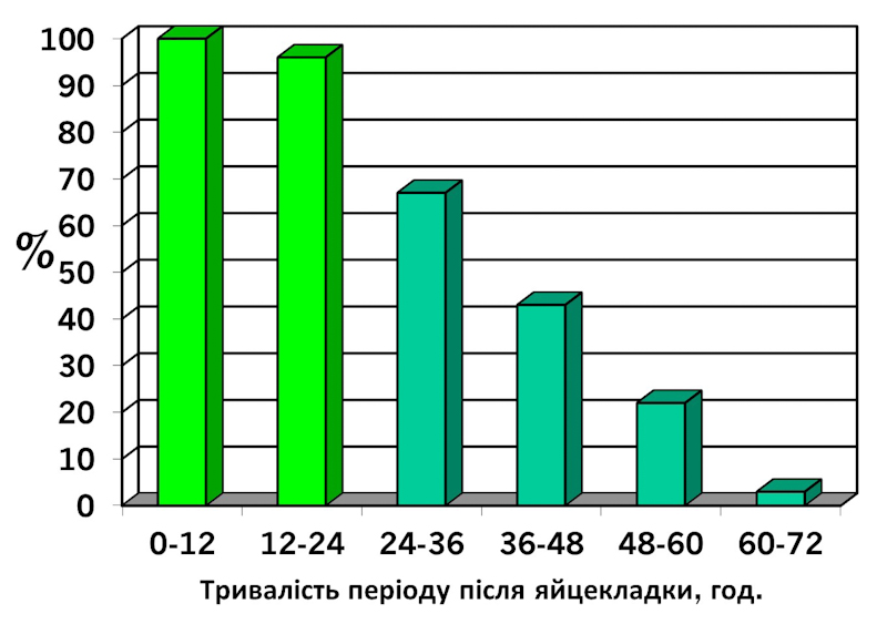 Рис. 1. Овіцидна активність інсектициду МАТЧ® в залежності від своєчасності застосування.