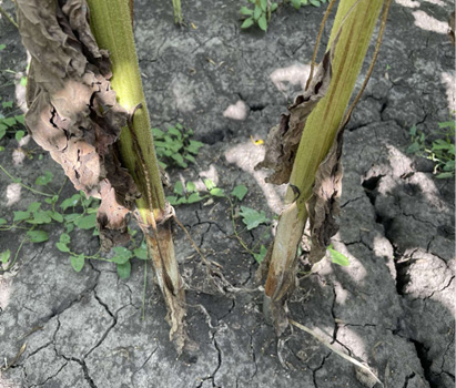 Фомопсис – поширений в усіх регіонах України, де вирощують соняшник та висока вологість повітря. Збудником є недосконалий гриб Phomopsis helianthi Munt. Втрати врожаю можуть сягати від 20% до 100%. Ознаки хвороби виявляються на рослинах протягом всього вегетаційного періоду. Перші симптоми з’являються, як правило, після цвітіння соняшника. На нижньому листі виникає побуріння (некроз) з хлоротичною облямівкою, яке починається з кінчика листка і поширюється по головній жилці, набуваючи характерної форми сектора, обмеженого головними жилками. Хвороба поступово охоплює листок повністю, яке засихає, і переходить на черешок, а згодом і стебло. В місці побуріння стебло стає порожнистим, загниває і легко переламується.