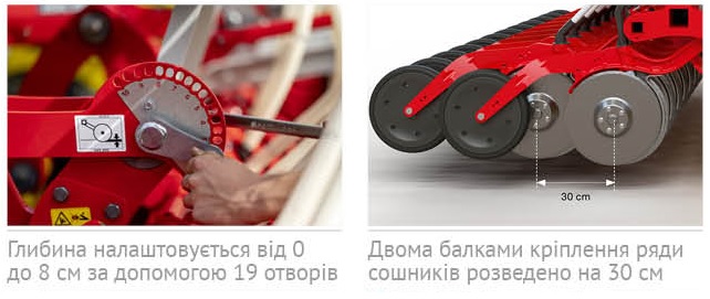 Розроблені «з нуля»: новий дишель, бункер під тиском із поздовжнім розподіленням і коток-шасі з посмуговим ущільненням під кожен сошник.