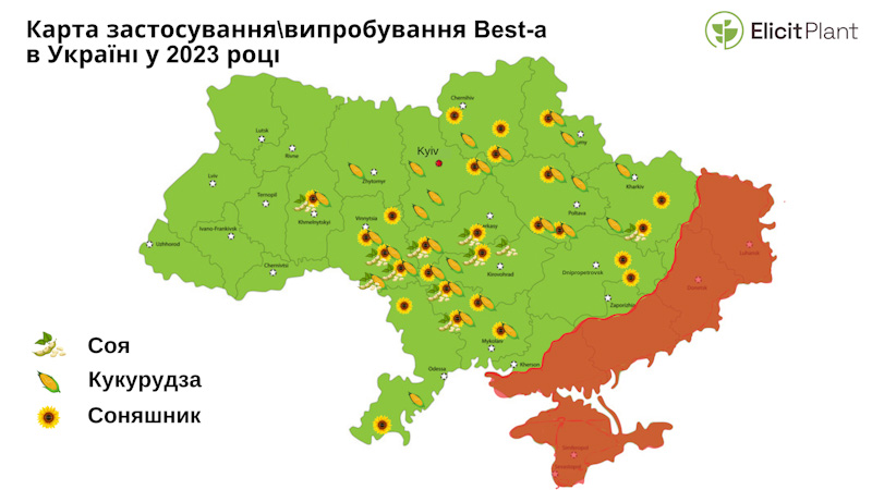 Уже два роки в Україні на кукурудзі та сої застосовують препарат Best-a, а з 2024 року також почали продавати препарат EliSun-a для соняшнику та EliGrain-a для зернових (ячмінь, пшениця). Як показали результати випробувань, застосування цих продуктів зменшує наслідки посухового стресу, призводить до збільшення врожаю мінімум на 5% та економії води до 20%.