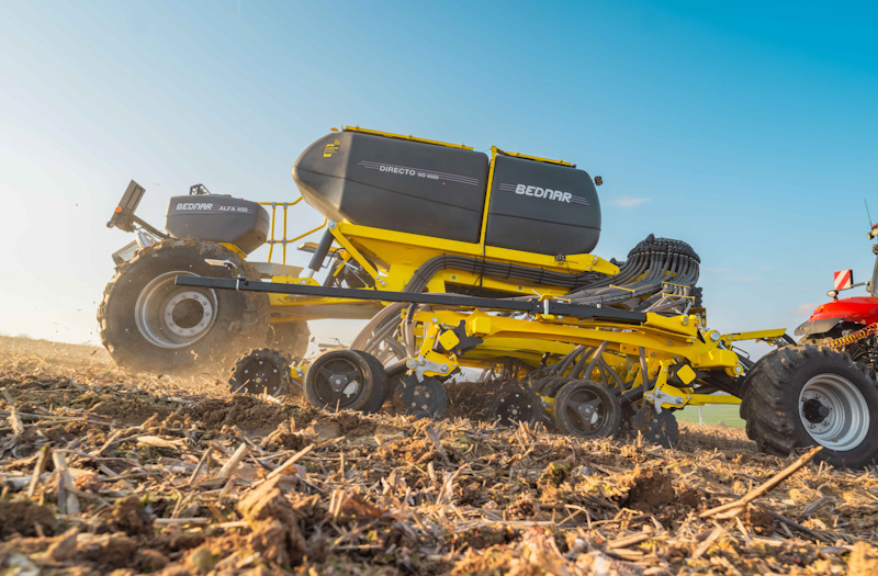 Сівалка DIRECTO NO з робочою шириною 6 м має двокамерний бункер під тиском об’ємом 5000 л. Завдяки герметичній конструкції в бункері створюється надлишковий тиск. Це технічне рішення дозволяє дозувати велику кількість посівного матеріалу з високою точністю незалежно від фракції насіння/добрива.