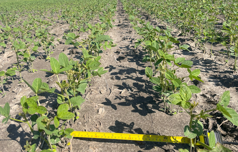 Якщо після сівби MATADOR MO 6000 сходи сої було отримано трохи більше ніж за два тижні, то посіяне сівалкою точного висіву насіння мусило дочекатися дощів і аж тоді почало сходити — значно пізніше.