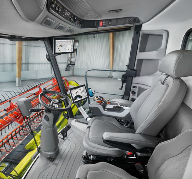 Взагалі ж нова суперкомфортна кабіна оператора в комбайнах CLAAS TRION забезпечує більше простору, особливо для голови та ніг, і може бути додатково обладнана шкіряним сидінням, яке повертається на 30 градусів в обидва боки для оптимального положення сидіння в будь-який час. Тут також є 30-літровий холодильник, додатковий пакет світлодіодного освітлення на 360° і склоочисник, який обертається на 360°.