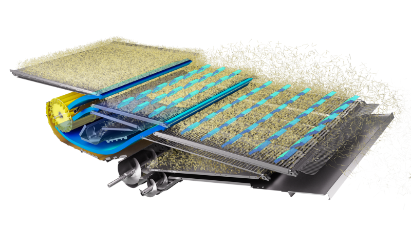 Перед потужними роторами в конструкції комбайна New Holland CR11 розташовано спеціальний бітер, що синхронізує потік маси з похилої камери з роботою роторів. Площа інноваційного решітного стану TwinClean тут становить 8,8 м², до того ж є два верхніх і два нижніх решета. Twin Clean — це фактично перше у світі автоматизоване рішення, що гарантує рівномірне розподілення маси по всій площі решітного стану, забезпечуючи максимальну продуктивність і зведення втрат зерна до мінімуму.