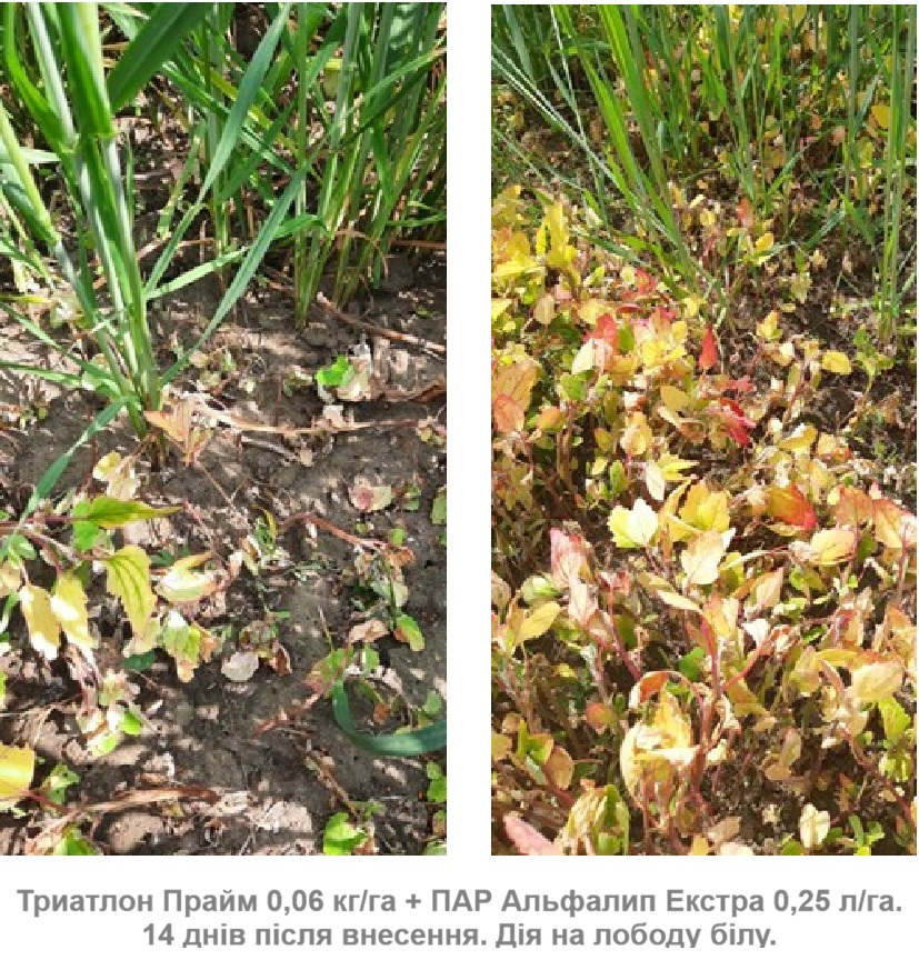 Аграрії обирають Триатлон Прайм (трибенурон-метил, 250 г/кг + тифенсульфурон-метил, 250 г/кг + флорасулам, 100 г/кг + антидот ізоксадифен-етил, 100 г/кг), тому що він має найширший спектр дводольних бур’янів (близько 200 видів) і здатний не просто контролювати, а більшість із них знищувати, тим самим унеможливлюючи прояв резистентності. До того ж три діючі речовини гербіциду мають короткий період напіврозпаду (від 1 до 18 діб), унаслідок чого відсутні будь-які обмеження в сівозміні щодо наступної культури.