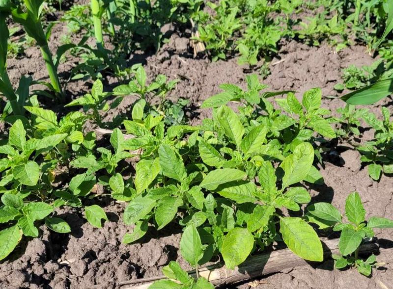 Фото 1. Рослини щириці звичайної, що вижили після застосування гербіцидів з групи ALS inhibitors