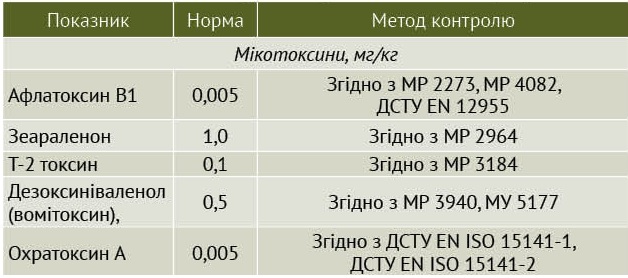 Таблиця 4. Максимально допустимий уміст мікотоксинів у зерні пшениці