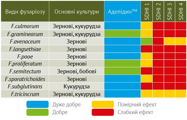 Таблиця 7. Адепідин™ — унікальна ефективність щодо Fusarium spp.