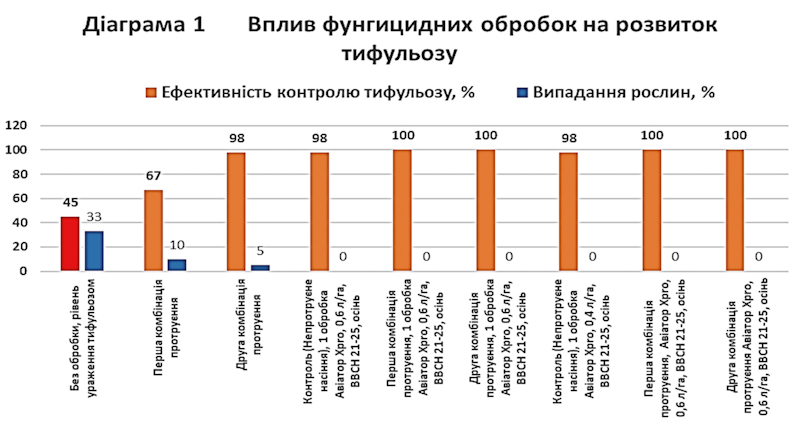 Діаграма 1. Вплив фунгицидних обробок на розвиток тифульозу