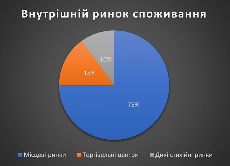 Дослідженням європейських експертів станом на 2023 рік встановлено наступну структуру споживання на внутрішньому ринку (діагр. ):