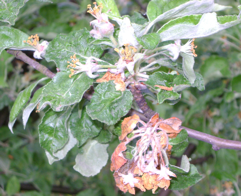 Серед хвороб яблуні великої шкоди завдає борошниста роса. Шкідливість її полягає в тому, що уражені листки недорозвинуті, швидко опадають, а пагони відстають у рості, їхні верхівки часто засихають, суттєво знижується зимостійкість дерев; уражені суцвіття плодів не утворюють, а сформовані зав’язі швидко осипаються. Особливо сильно уражуються саджанці та сіянці в розсадниках. Недобір урожаю яблук може сягати 30–50% і більше