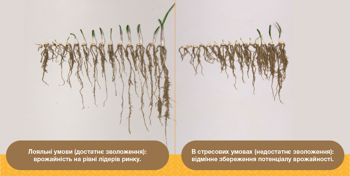 Тому він придатний для сівби в оптимально ранні строки. Таким чином, з’являється можливість збільшити фазу активного фотосинтезу, за якої в рослині інтенсивно накопичується органічна речовина, розвивається коренева система. До речі, покращені можливості розвитку кореневої системи гібрида СИ Феномен також доведено в лабораторних умовах (рис. 1). Це дозволяє підвищити врожайність зерна, особливо в ті роки, коли друга половина вегетації перебігає у посушливих умовах.