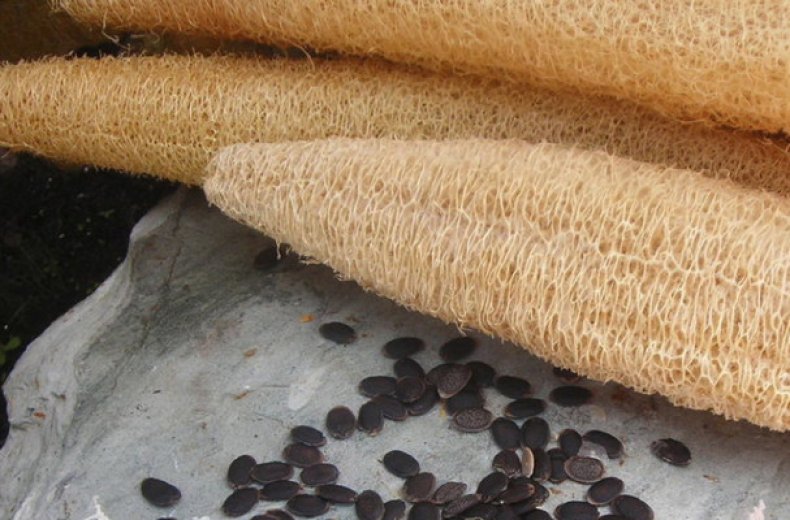 Люфа є представником ліаноподібних рослин, з пагонами до 4-7 м завдовжки. Всі вони мають розгалужені вусики та шорсткості по ребрах. Листя - пальчато-п'ятилопатеві (іноді цілісні) і розташовані по черзі. По контурах листові пластини нагадують серце з діаметром 15-27 см і розташованими по краях зубцями. Всі вони випаровують досить багато вологи, тому рослина потребує регулярного поливу.