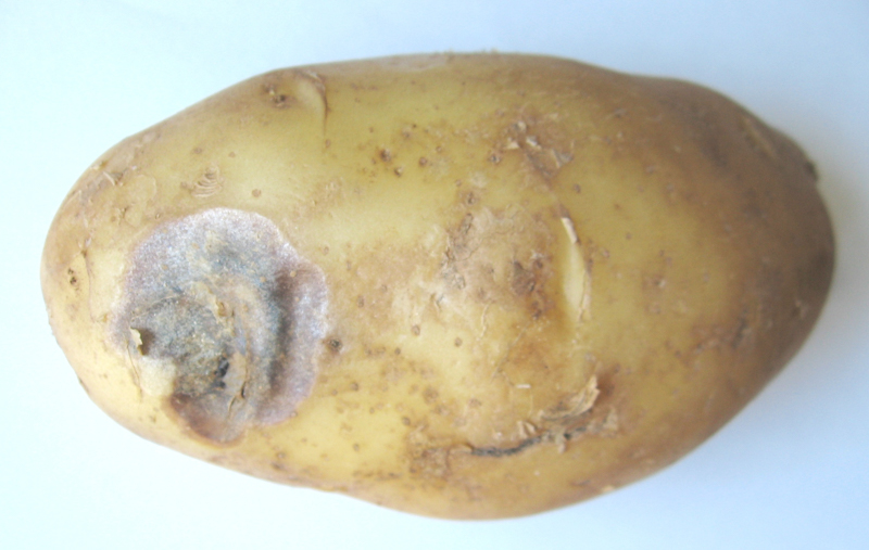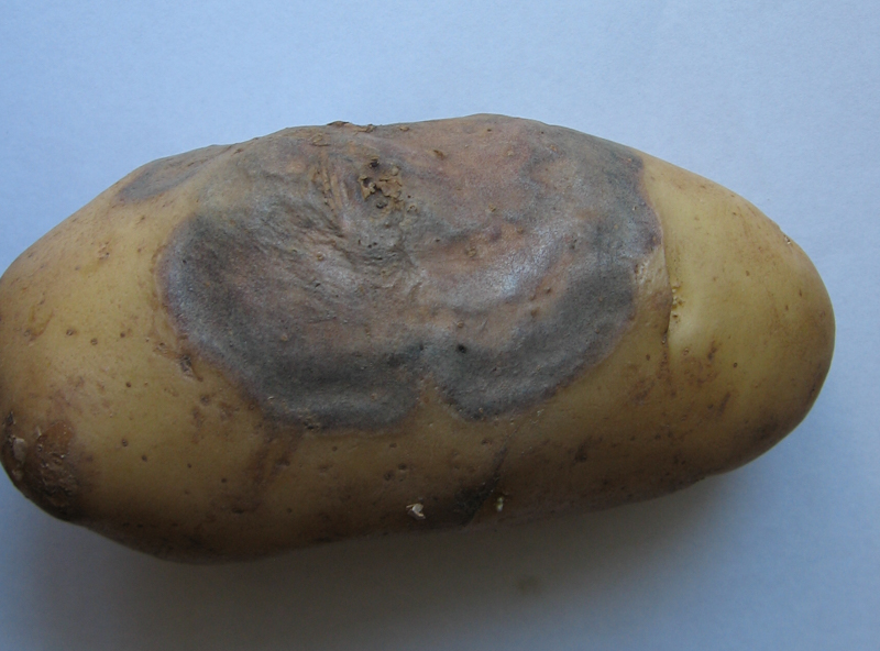 Хвороба на бульбах проявляється наприкінці вегетації і в період зберігання картоплі за сприятливих для збудника хвороби умов — підвищеної вологості й відносно високої температури.