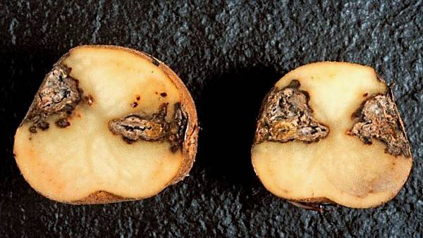 Спори грибів-збудників завжди перебувають у ґрунті та очікують на свіжі бульби. Так, інфікована картопля може згнити в полі. Та якщо зараження трапилося в кінці періоду вегетації, ви побачите результат дії збудника лише у сховищі: вода й крохмаль у бульбах картоплі стануть сприятливим середовищем для інтенсивного розмноження гнилісних мікроорганізмів. Якщо не вживати профілактичних заходів, рік у рік розвиток хвороб посилюватиметься. Нижче розглянемо найпоширеніші види хвороб картоплі.