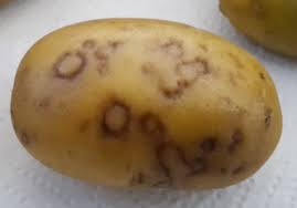 У разі зараженні штамом PVY на бульбах утворюються концентричні кільця.