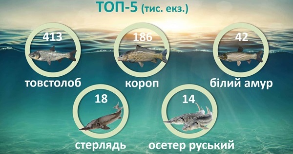 Понад 680 тисяч екземплярів риби вселено до водойм України в межах програми зариблення протягом січня-травня 2025 року. Зокрема, у водойми випущено молодь товстолоба, коропа (сазана), білого амура, стерляді, осетра руського, форелі струмкової, лина та щуки.