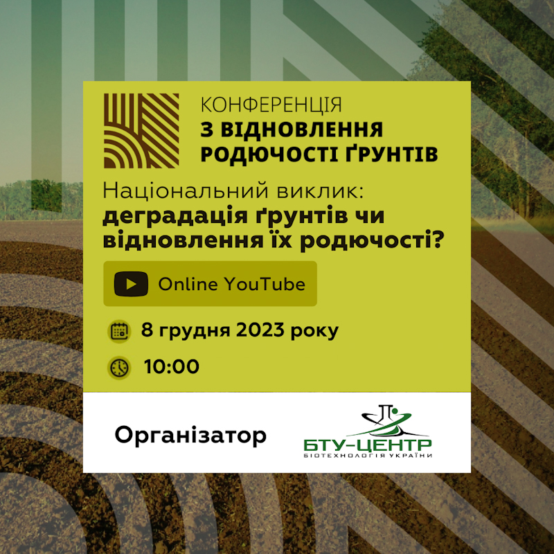 8 грудня 2023 року відбудеться IV Міжнародна конференція “Національний виклик: деградація ґрунтів чи відновлення їх родючості”. Головна тема заходу – відродження ґрунтів, постраждалих внаслідок воєнних дій.