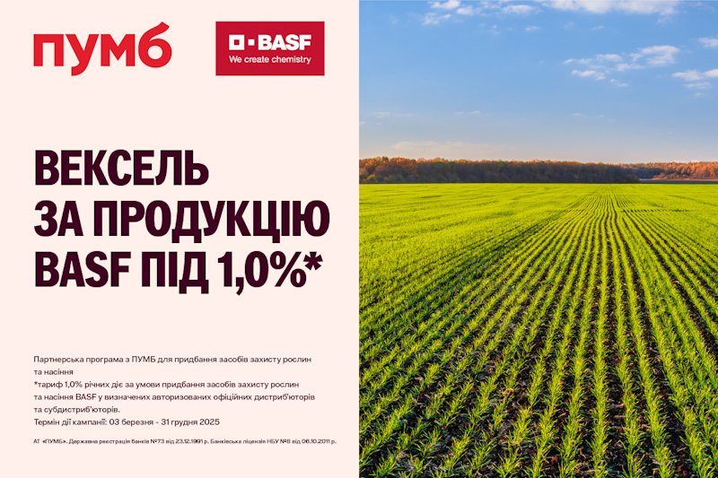 Перший Український Міжнародний Банк (ПУМБ) уклав договір про співпрацю із компанією BASF щодо спеціальних умов для аграріїв у рамках пропозиції з авалювання векселів під 1% річних.