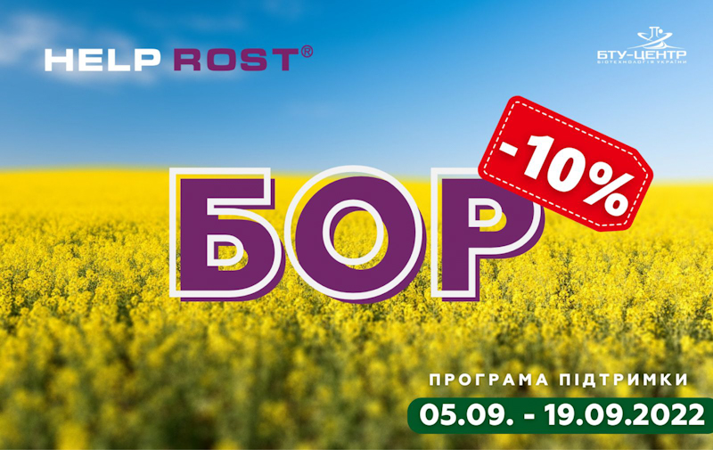 БТУ-ЦЕНТР продовжує підтримувати працівників сільського господарства. У рамках програми підтримки аграріїв у воєнний час компанія підготувала знижку -10% на всю лінійку мікроелементів Хелпрост. Вона діятиме з 5 по 19 вересня поточного року.