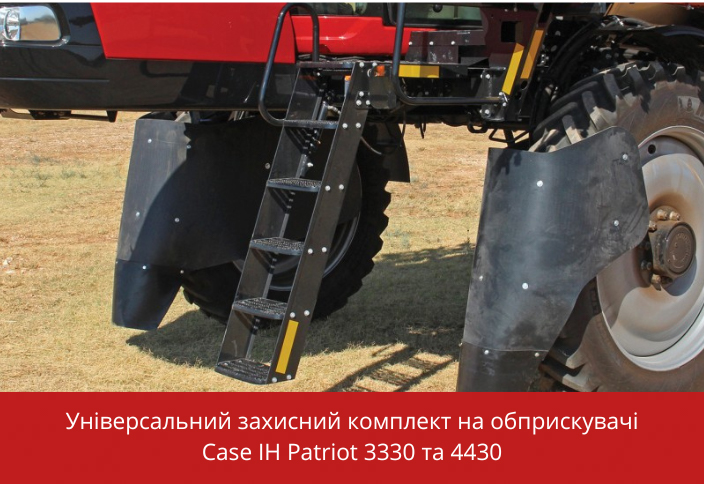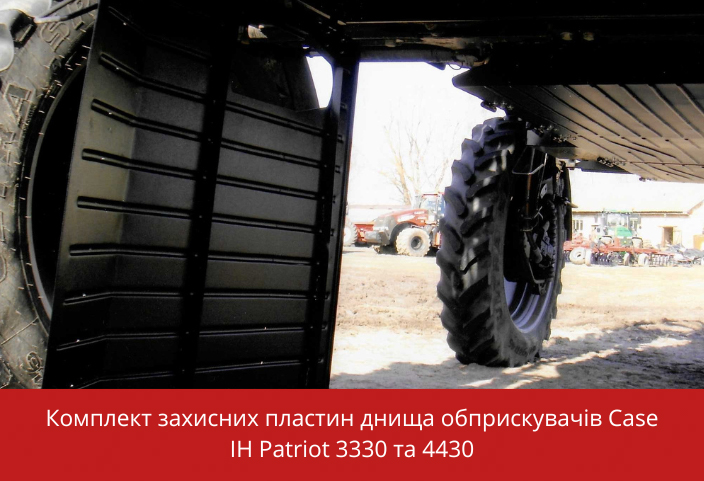 Ще один комплект, який ми пропонуємо - це захист днища обприскувача. Цей комплект складається з п’яти металевих щитків. Передній щиток кріпиться жорстко, інші відкриваються для доступу до систем обприскувача, для зручності обслуговування. Щитки пофарбовані порошковою фарбою і майже не стираються з плином часу. Ця опція потрібна для проведення десикації соняшнику і вона дуже допомагає у зменшенні втрати врожаю.