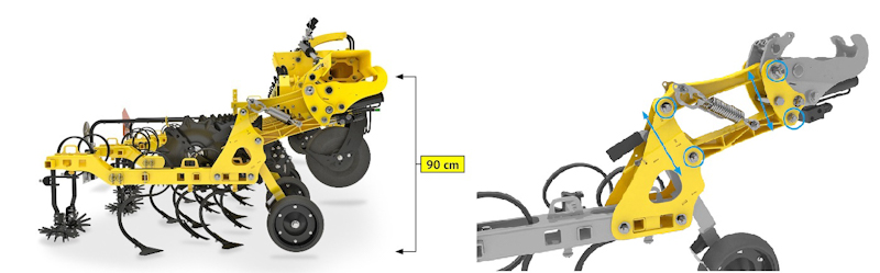 Моделі ROW-MASTER RN_PROFI включають перевірену конструкцію з використанням паралелограма. Кожна робоча стійка кріпиться до рами за допомогою паралелограма, що забезпечує відмінне копіювання рельєфу і точно підтримує встановлену робочу глибину.