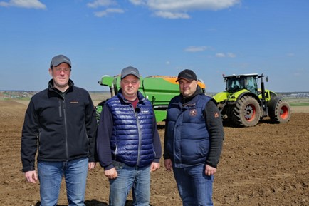 На фото зліва направо: Андрій Михайленко, в.о. генерального директора ДП «Амазоне-Україна», Ігор Ліштван, головний агроном ТзОВ «Городище», Андрій Бойко, представник ДП «Амазоне-Україна» у західному регіоні України