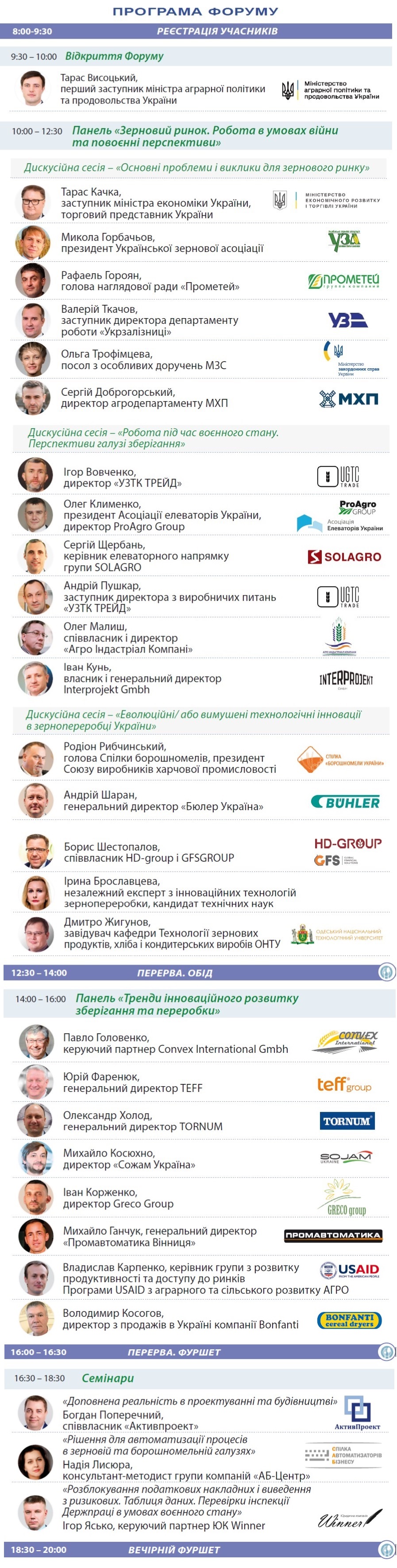 Форум збере разом 30 провідних спікерів та експертів аграрного ринку держави, понад 40 компаній-партнерів, котрі представлять свої послуги й технологічні рішення відвідувачам, та більш ніж 700 учасників.