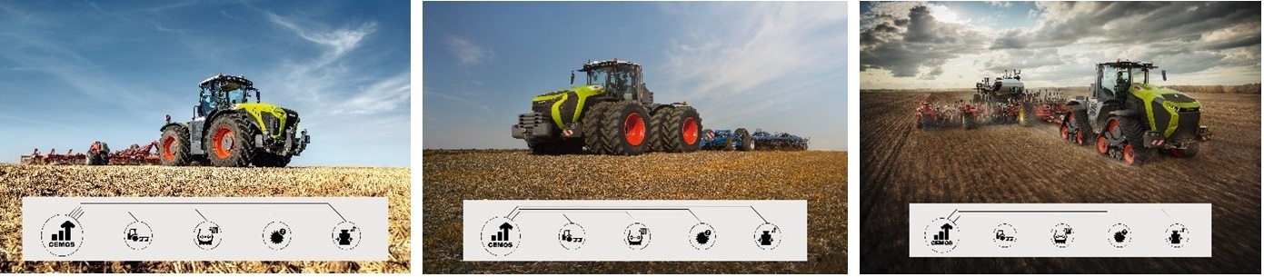 Під час випробувань DLG у 2020 році (DLG Test Report 7096) на двох тракторах AXION 870 CMATIC з причіпними культиваторами було виявлено, що система CEMOS для тракторів знизила споживання палива на 16,8% і збільшила продуктивність на 16,3% порівняно з досвідченими водіями з усього світу. Безперервно порівнюючи дані датчиків про фактичну швидкість руху, тягову силу, пробуксовку коліс, споживання палива, частоту обертання двигуна і передавальне число трансмісії, а також інші змінні, CEMOS надає цінну допомогу навіть досвідченим водіям – таким чином, навіть найкращі можуть стати ще кращими. Завдяки цьому процесу безперервної синхронізації даних система може точно визначити і кількісно оцінити оптимальні робочі стани і змінні під час динамічних польових робіт, а потім, використовуючи діалоговий інтерфейс, запропонувати водієві поточні коригування. Це те, що відрізняє CEMOS від інших суто статичних систем без функції самонавчання.