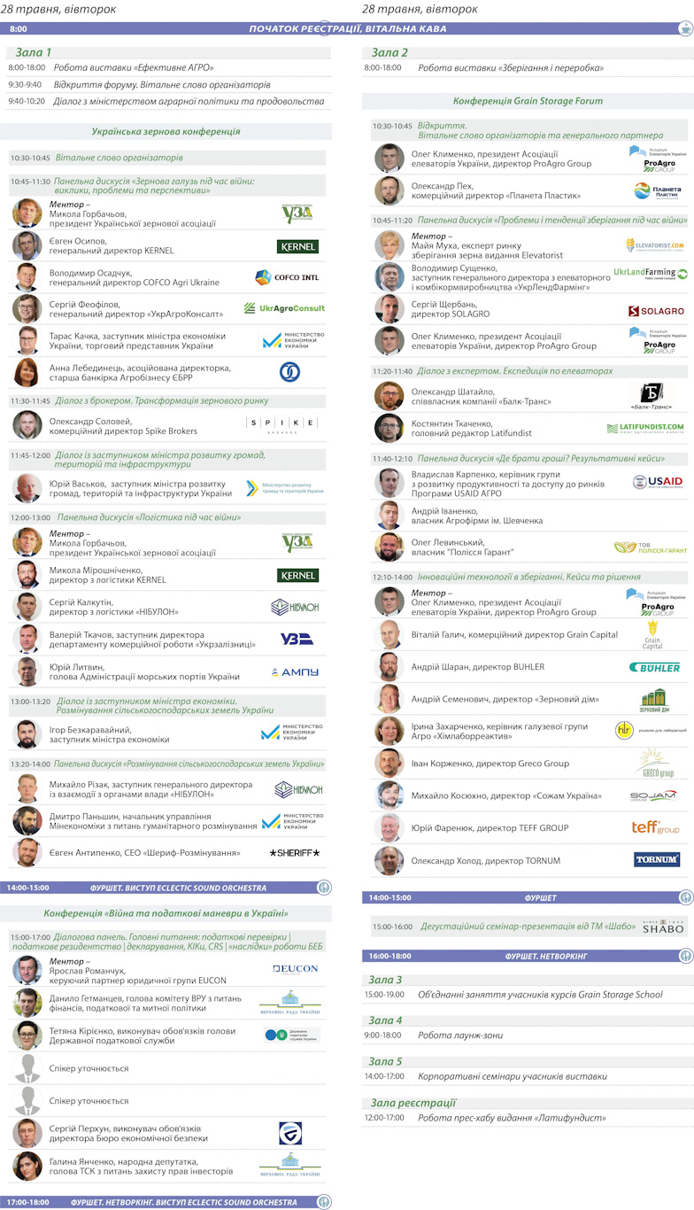 • 5 конференцій: технології та інновації у вирощуванні | зберігання | переробка | трейдинг і логістика | податки