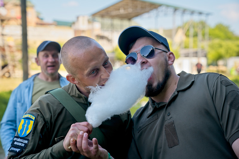 Серед відвідувачів і ветеран Сергій Голдиш з Канівщини – учасник АТО. За контрактом служив у лавах ЗСУ з 2013 року. Брав участь у бойових діях в районі населених пунктів Мар’їнка, Горловка, Грабовське, Пески. У серпні 2014 потрапив у полон, де втратив майже всі зуби.