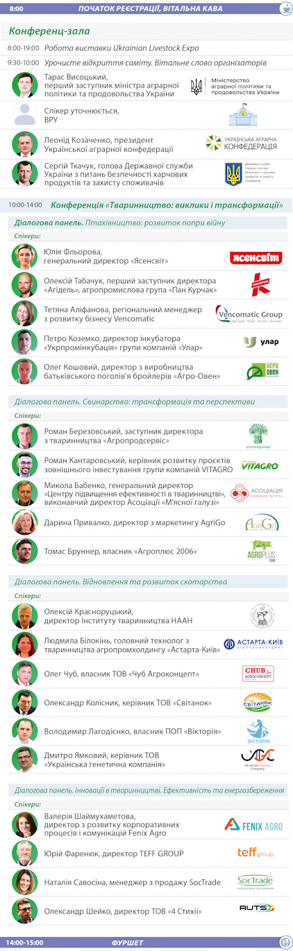 Подія буде цікавою для: виробників продукції тваринництва всіх напрямків (птахівництво, свинарство, врх тощо), переробних підприємств (м’ясокомбінати, молокозаводи тощо), комбікормові заводи, виробників ветеринарної продукції, постачальників технологій, продуктів та послуг для тваринництва і птахівництва.