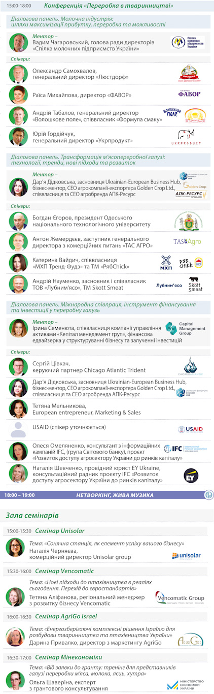 • Виставку обладнання і технологічних рішень для виробництва і переробки продукції тваринництва