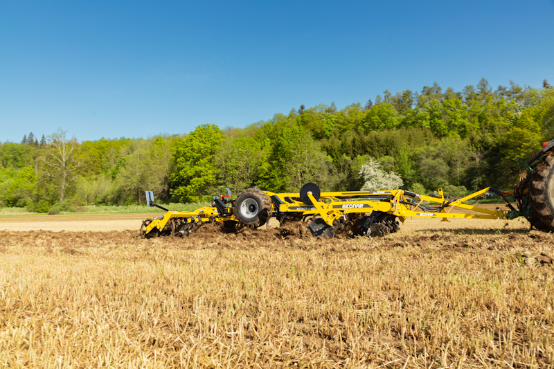 • Багатофункціональність: комбіновані культиватори від BEDNAR поєднують у собі дискові робочі органи (Ø 690 мм) та долота, що дозволяє виконувати дві операції одночасно. Два передні ряди дисків забезпечують відмінне підрізання та перемішування пожнивних решток з ґрунтом, тоді як два ряди доліт забезпечують інтенсивне розпушування на глибину до 35 см. Таке поєднання робочих органів дозволяє забезпечити якісне подрібнення та перемішування решток з ґрунтом, що сприяє їх подальшій мінералізації.