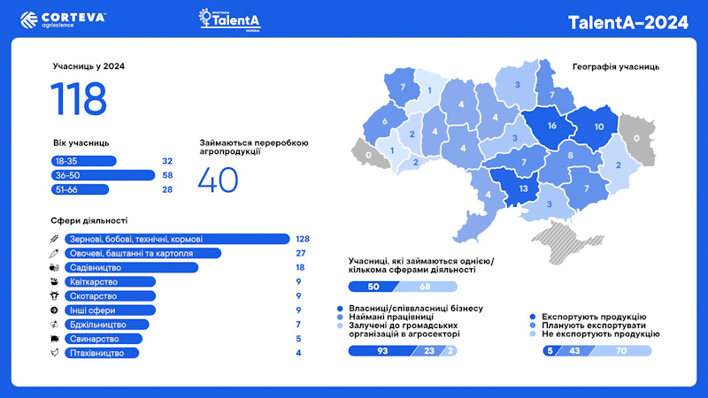 Усього на участь у TalentA-2024 було подано понад 200 заявок. Організаційний комітет відібрав лише ті анкети, які відповідали критеріям TalentA-2024: вік від 18 років; задіяність у аграрному виробництві або управління сільськогосподарським підприємством не менше року; проживання в населеному пункті до 10 000 осіб або робота на підприємстві, яке зареєстроване в такому населеному пункті.