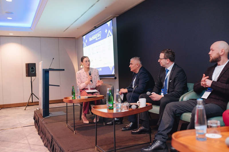 Перед початком обговорення модератор панелі Катерина Фостер, Керівниця Проєкту, Виробництво, Агробізнес та Послуги у Європі Міжнародної Фінансової Корпорації (IFC), презентувала ключові аспекти роботи організації та її роль у підтримці агробізнесу, зокрема в Україні та Центральній Європі. Вона підкреслила, що IFC допомагає компаніям на ранніх етапах розробки проєктів, надаючи підтримку у проведенні техніко-економічних обґрунтувань, аналізу ринку та діагностики. Крім того, IFC пропонує широкий спектр фінансових інструментів, включаючи кредити, облігації, участь в капіталі та фінансування, пов’язане зі стійким розвитком, що допомагає залучати інших кредиторів для співфінансування проєктів, дозволяючи компаніям забезпечити необхідні ресурси для реалізації амбітних ініціатив.